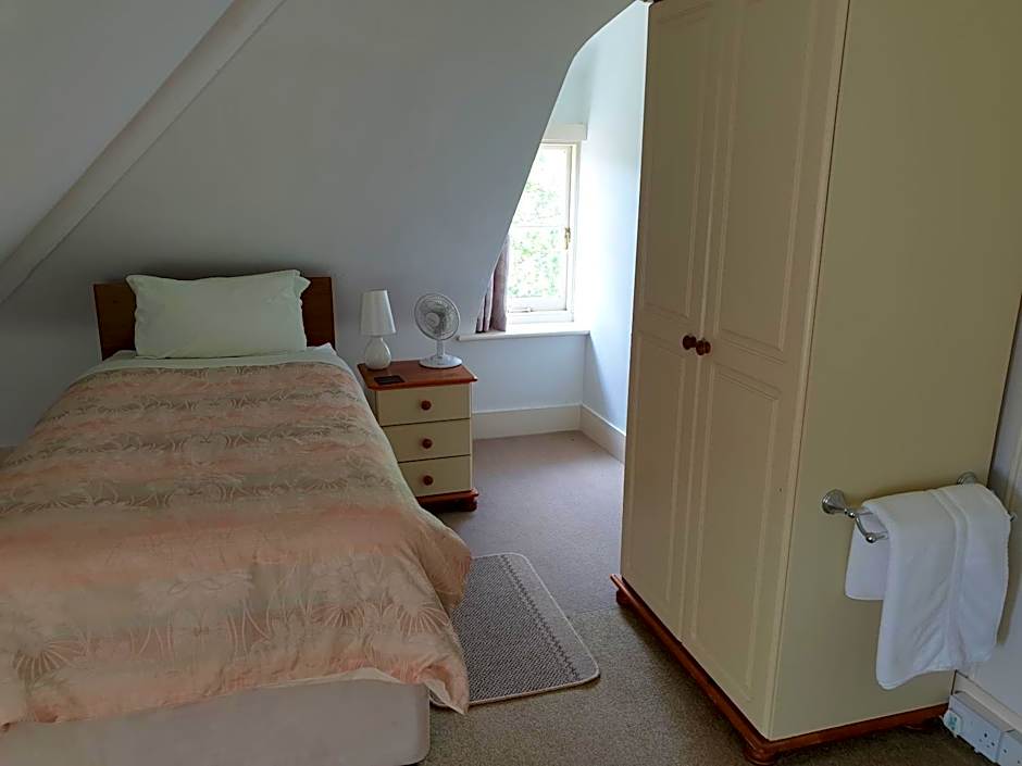 This loft/attic room on the top floor and shares a bathroom with two other rooms on the same floor. This room has a flat-screen TV, hospitality tray and sink. It overlooks the Trinity Gardens and due to it's location this room is not suitable for pets